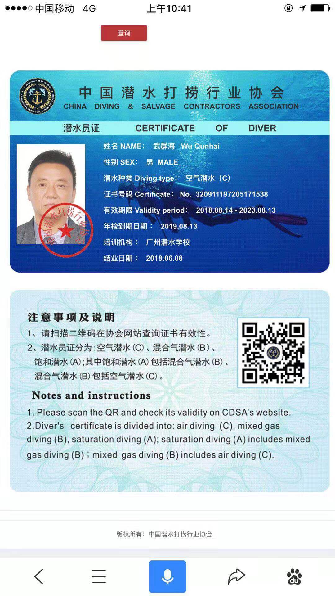 公司現有施工隊伍五個,專業潛水員30余人,技術人員20余人,多次參加了 重點項目施工:如三門核電廠,浙江跨海大橋,內蒙烏錫鐵路黃河特大橋,寧杭高鐵,京福高鐵等水下切割、水上、水下拆除,水下混凝土灌注,水下鋼護筒切割等任務。